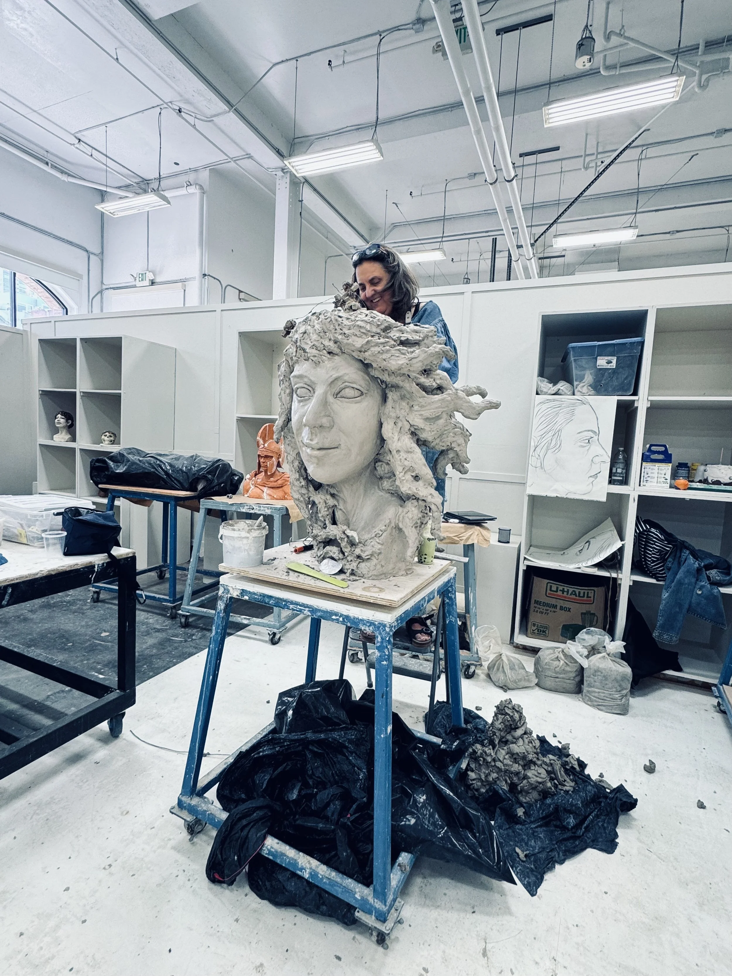 Erika Pazmandi Hagen is a Hungarian-American Fine Artist specializing in large scale clay sculpting, wheel-thrown sculpting and the teaching thereof for 15+ years. Skilled in handbuilding, wheel throwing, electric/raku kiln firing, glazing and educating different age groups. Erika creates sculptures that have a narrative, express human feelings, portraits or depict the human figure in motion.