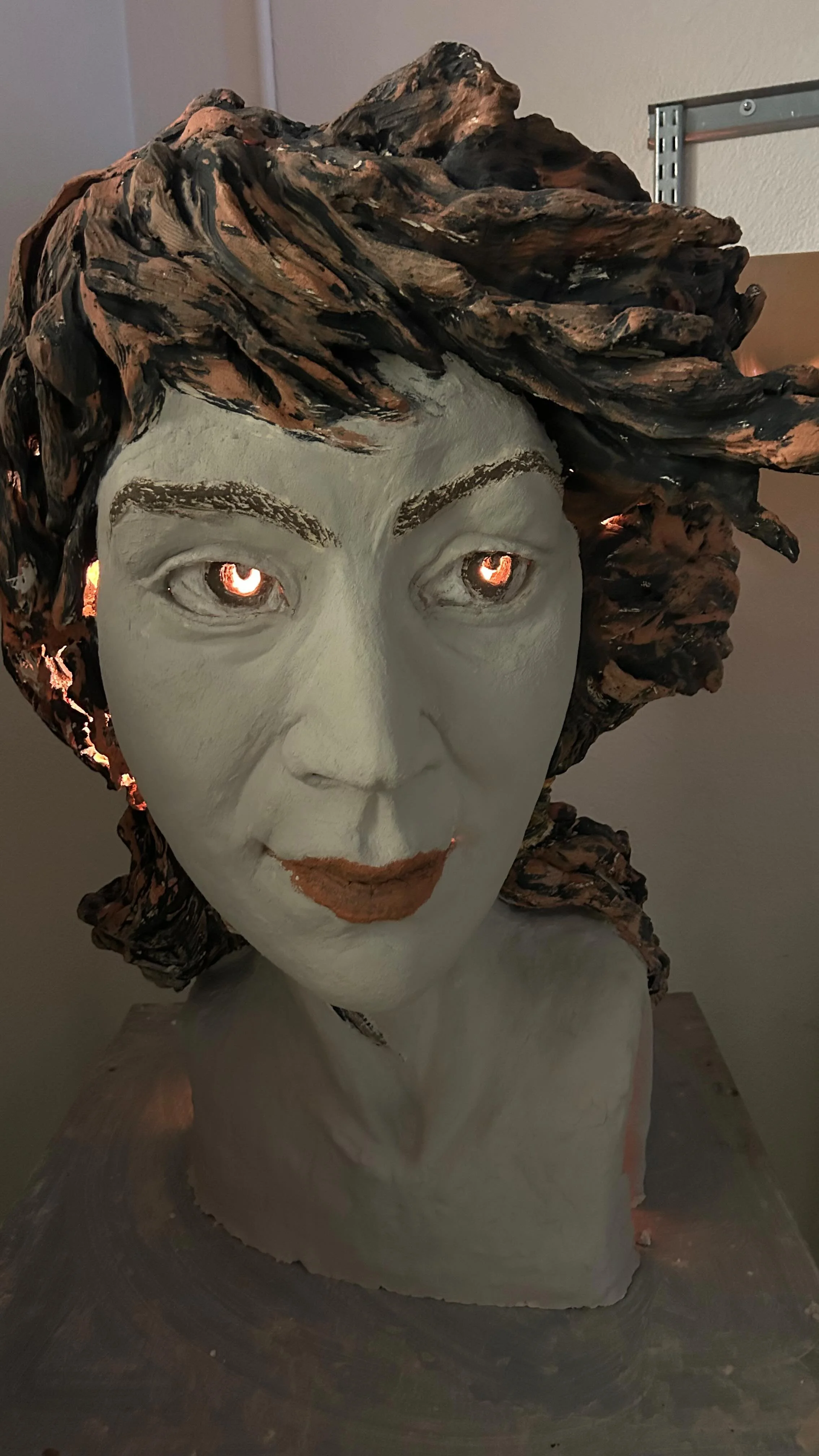 Contact me Visit me By appointment Social Media - playing with faces and the faces playing with me, play more, don’t stop, there is more to show and there is more to see. New milestone MA in Sculpture Self portrait - wheel - thrown - pottery Angel Clay bust in progress My students’ work and the awards they won - 2023 -2024 My Angels
