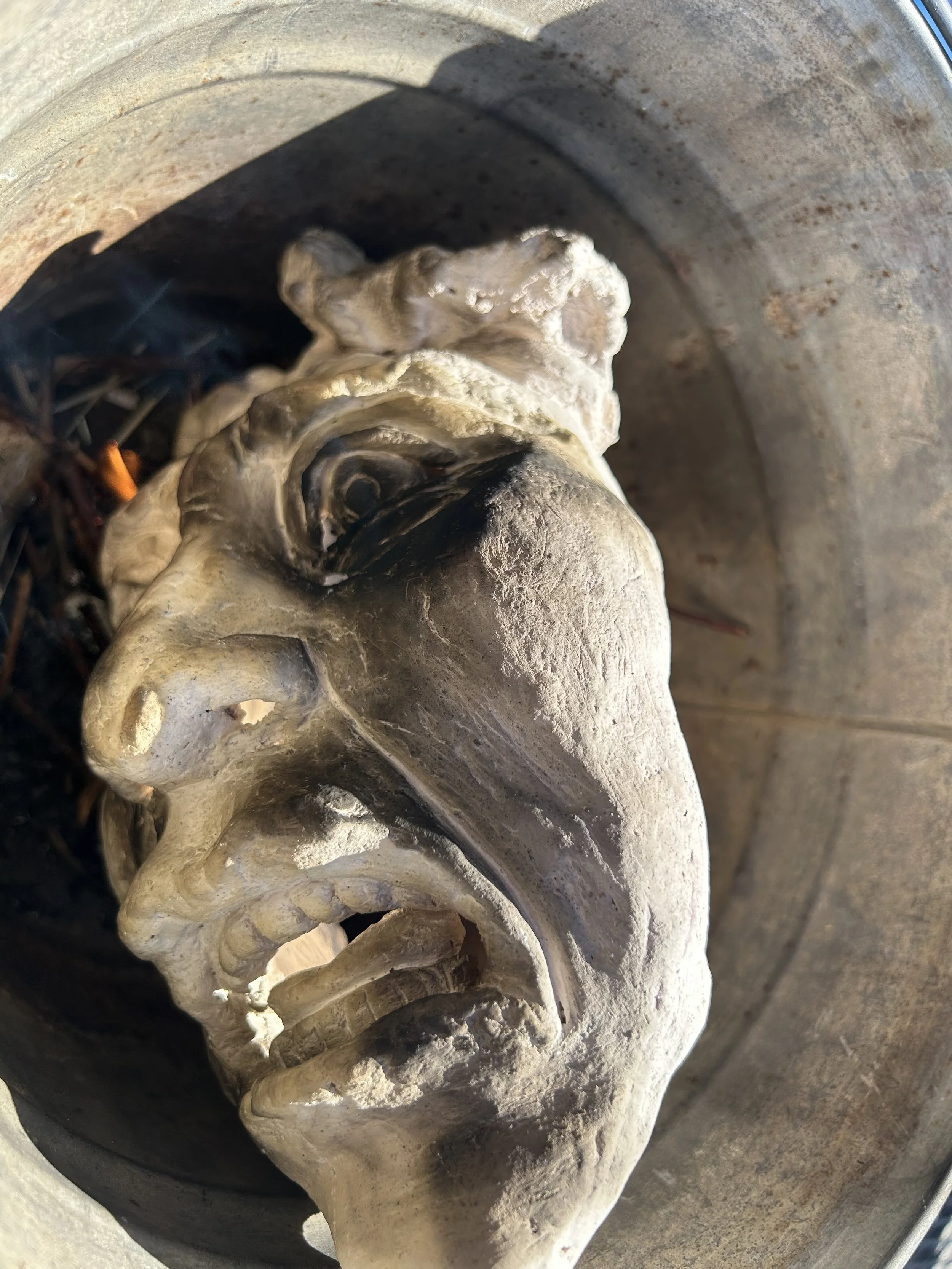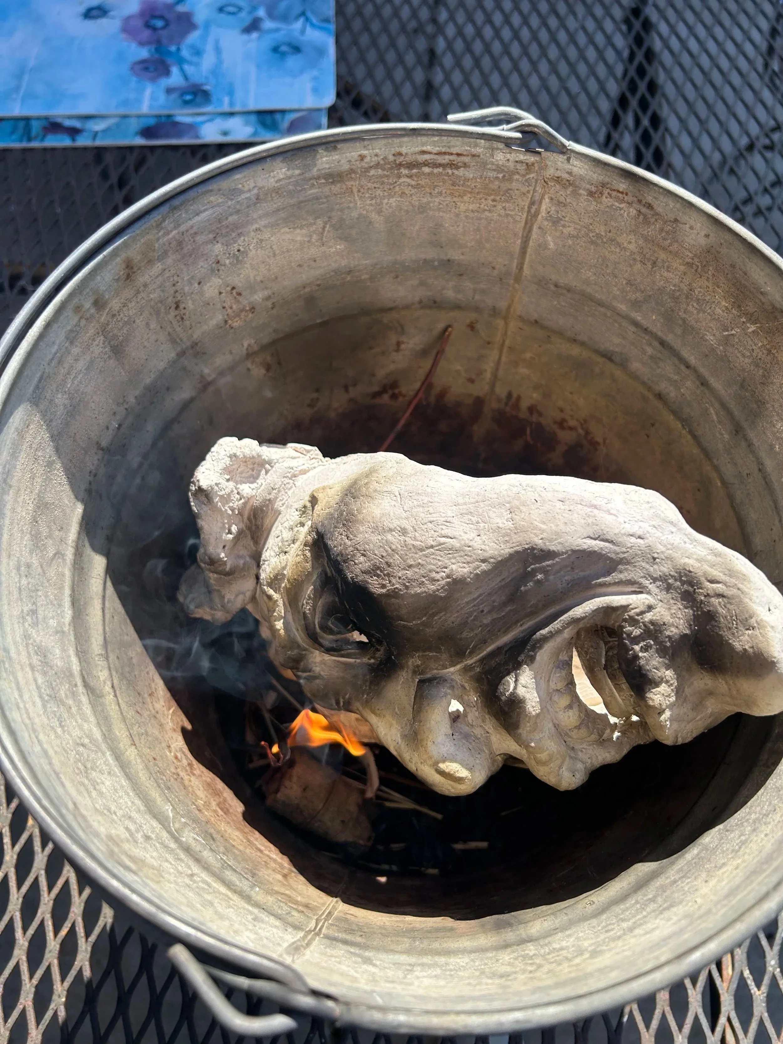 Smoke fired ceramic face